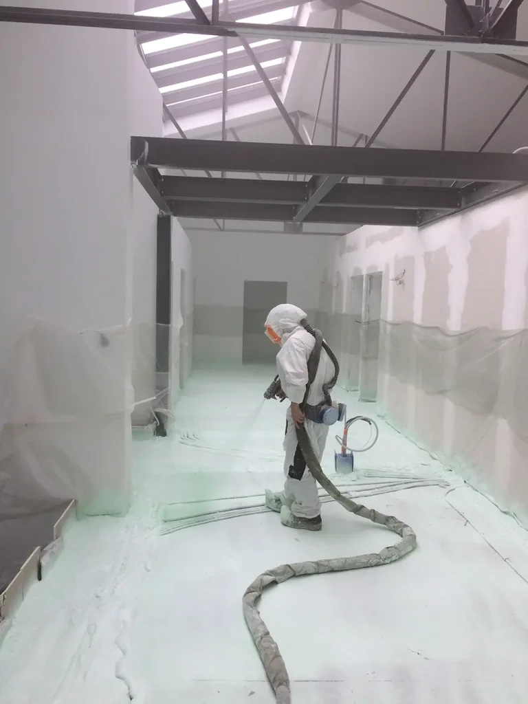 Isolation projetée polyuréthane pour sols, planchers et sous-chapes.